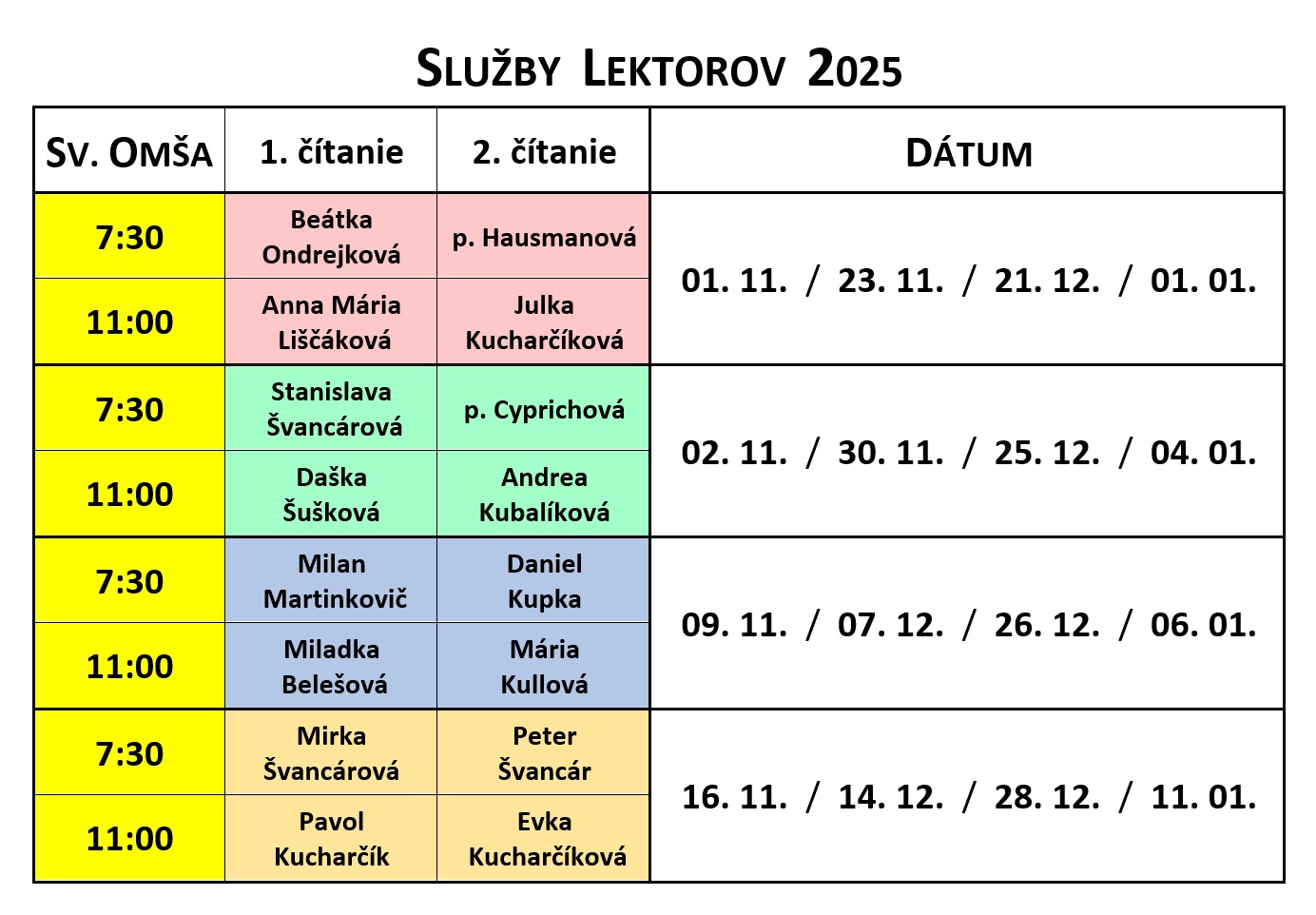- Kostol: je otvorený k súkromnej adorácií každý deň